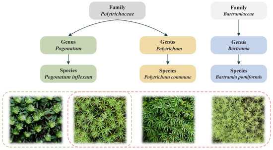 To ensure the professionalism and accuracy of data labels, we base our work on the standard image dataset containing four bryophyte species created by Uzhinskiy et al. and select PPBC as the data source to construct a new dataset with a larger number of bryophyte species. For the bryophyte images in PPBC, we apply a consistent screening methodology: (1) selecting images with a large proportion of plant areas and a large number and density; (2) removing blurred images and those with significant occlusions.