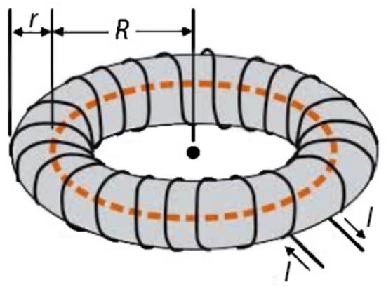 The toroidal solenoid electron model of Oliver Consa. The electron charge moves at the speed of light along the black line; the trajectory encompasses both a small radius r and Compton radius (noted as R in the figure). The electron acts as an antenna, where the resonance frequency coincides with the length of the antenna’s circumference. (Credit: from [10].)
