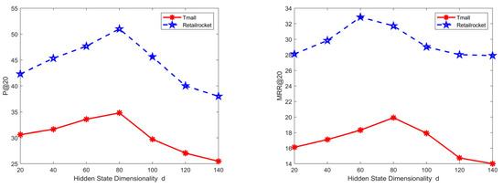 We explored embedding dimension within the range of 20 to 140. Figure 2 presents the experimental results in terms of P@20 and M@20, illustrating the effect of varying embedding dimensions on both datasets. It is evident that the performance improves as the embedding dimension is increased from 20 to 100. However, when the embedding dimension is further increased from 100 to 140, there is a slight decline in performance on both datasets. This decrement can be attributed to overfitting, where the model encodes more information than it can effectively handle. Notably, CGH-SBR demonstrates remarkable robustness to changes in embedding dimensions, as only a minor variation in performance is observed. This suggests that the proposed CGH-SBR is less sensitive to different configurations of hidden state dimensionality.