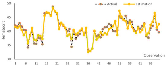 Plot results of the estimated values of the model along with the actual values on the second response (hematocrit).