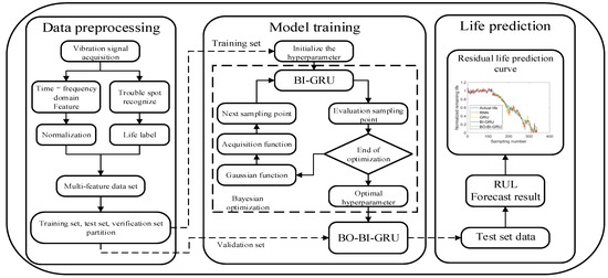 The algorithmic steps of the BO-BI-GRU network model for RUL prediction are illustrated in Figure 5.