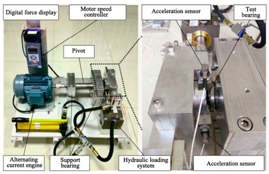 The LDK UER-204 (LYC Bearing Corporation, Luoyang, Henan Province, China) bearing model was tested, with its parameters detailed in Table 1. Vibration signals throughout the bearing’s lifecycle were gathered using two PCB352C33 (PCB Piezotronics, Depew, NY, USA) single-axis accelerometers positioned horizontally and vertically on the bearing. A DT9837 (Data Translation, Marlborough, MA, USA) portable device recorded the signals, sampling every minute for 1.28 s at 25.6 kHz. The experiment included three operational scenarios, each testing five bearings. This section will use the full-lifecycle vibration signals from bearings under the second operating condition for remaining useful life prediction.