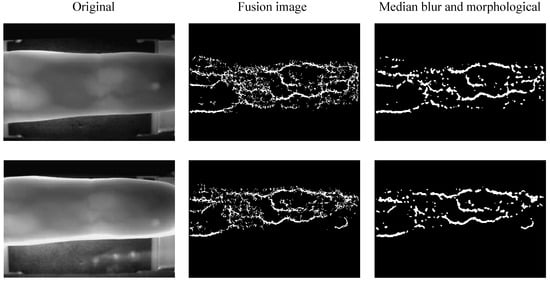 Median blur and morphological opening were then applied to connect sparse vein regions, removing residual noise and enhancing the model’s ability to learn vein features. Figure 5 is the end result. During actual training, the vein region pixel values of all images were set to 0, while the background region was set to 255. This was carried out partly to maintain consistency with the manually annotated vein images and partly to ensure that the labels more closely resembled the original vein images. Based on the conclusions of Jalilian et al. [16] and the scale of the manually annotated dataset, we set the scale of all traditional-method-annotated finger vein datasets used for model training to be consistent with that of the manually annotated dataset.