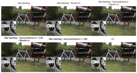 Qualitative evaluation of the results of super-resolution enhancement of Mip-Splatting 1K resolution rendered images on Mip-NeRF360 dataset to 4K resolution.