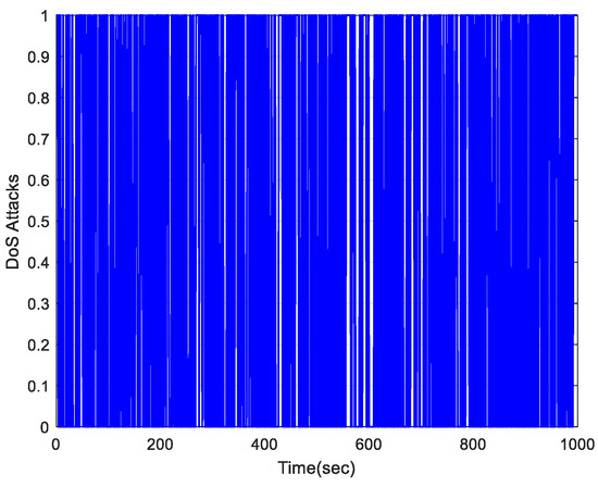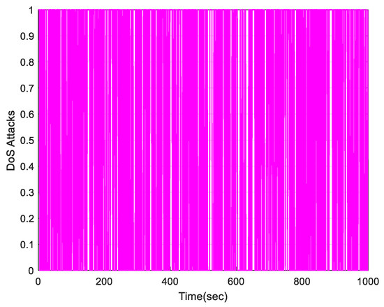 Moreover, the introduction of communication network makes the NCS more open, but it also brings the risk of network attacks to the system. Network attacks not only destroy the performance of the control system, but also bring about disastrous consequences. Denial of service (DoS) [34,35,36,37] attacks send a large number of useless data packets to the system, blocking communication channels and preventing normal system data packets from being transmitted to the control center in a timely manner, resulting in the control center being unable to generate effective control signals in a timely manner. Therefore, the control problem of DoS attacks has been subject to wide concern. In [38], for networked control systems under DoS attacks, an adaptive event-triggered method is proposed. For nonlinear multiagent systems with output constraints and DoS attacks, a robust fuzzy adaptive event-triggered control scheme is designed in [39]. In [40], for high-speed train speed tracking with aperiodic DoS attacks and communication delays, an extended-state observer-based MFAILC algorithm is proposed. In [34], a distributed MFAC method is presented for nonlinear multiagent systems subjected to DoS attacks. In [41], an new event-triggered MFAC method was presented for unknown nonlinear systems under frequency duration constrained DoS attacks.