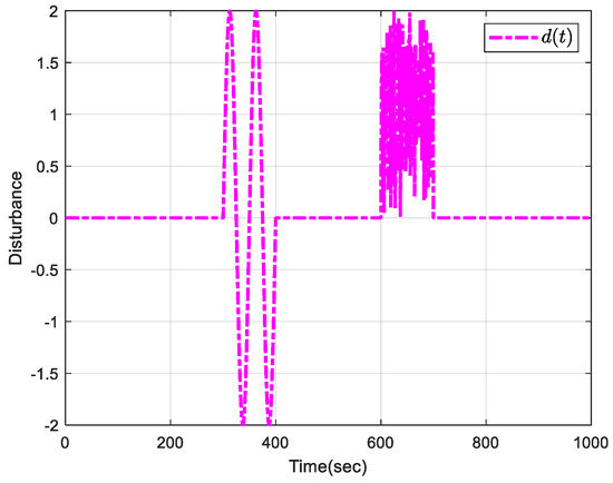 In order to verify the correctness and robustness of the presented method, the disturbance d(t) is considered, as shown in Figure 6.