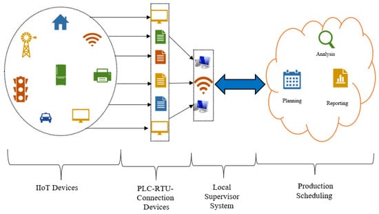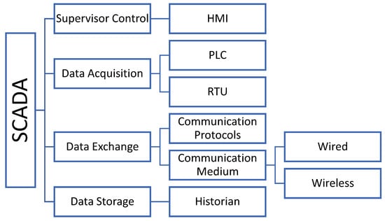 The synchronous and autonomous operation of SCADA systems is directly related to the error-free and smooth functioning of the software. Any intentional or unintentional interference, whether from internal or external sources, can partially or completely disrupt the system’s operation. With the advent of Industry 5.0/IIoT transformation, SCADA systems have been integrated with cyberphysical systems, cloud technology, big data analytics, artificial intelligence, and machine learning [42]. This integration has simplified the maintenance, infrastructure costs, and configurations of these systems. With these features, SCADA enables rapid alerting, system monitoring, notification of changes through alarms, and advanced communication capabilities. As SCADA operates on a distributed-system logic, communication needs to be fresh, live, and reliable, reaching even the remote endpoints. Figure 2 illustrates the hierarchical structure of the SCADA system.