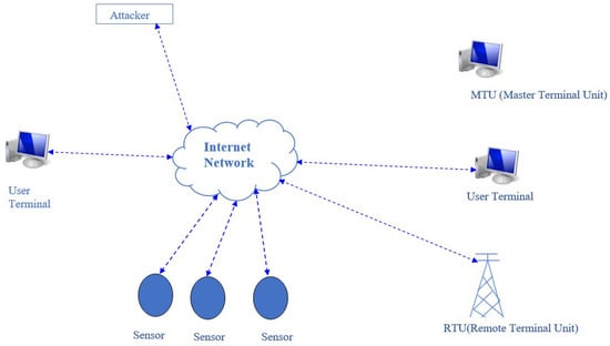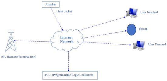 As shown in Figure 4, this is a type of attack that aims to detect open ports belonging to devices connected to the SCADA network. The attacker first gains access to the system through the internet network. Then, they send specific network packets to the main system components, such as RTUs, PLCs, sensors, and end-system components, such as users. By utilizing these network packets, the open ports are identified, and the attacker can infiltrate the respective device through these ports, rendering the system unusable or inaccessible, or manipulate its functionality.