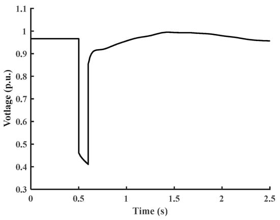 To the best of the authors’ knowledge, there are no prior studies in the literature on the parameter specifications for the motor loads in the CLOD model using the fifth-order IM-LM. This paper suggests that the parameter variation for the motor loads ranges based on the fifth-order IM-LM settings in [,,,]. Table 1 provides the parameter variation ranges for the motor loads in the proposed model. In this study, the torque coefficients A, B, and C are equal to zero. In addition, the initial mechanical torque has a predefined value of one. Figure 3 shows the input voltage for both models.