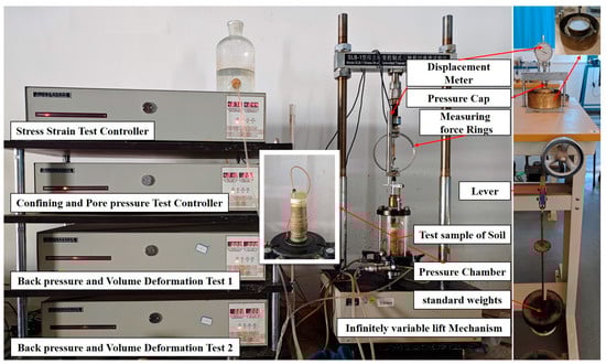 An SLB-1 stress and strain-controlled triaxial shear tester was used in combination with a high-pressure oedometer to test the soil mass. The soil parameter tests are shown in Figure 4.