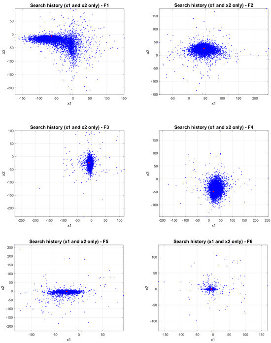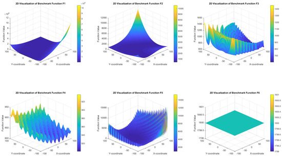 Illustration of the CEC2022 benchmark functions (F1–F6).