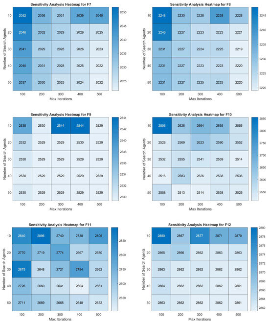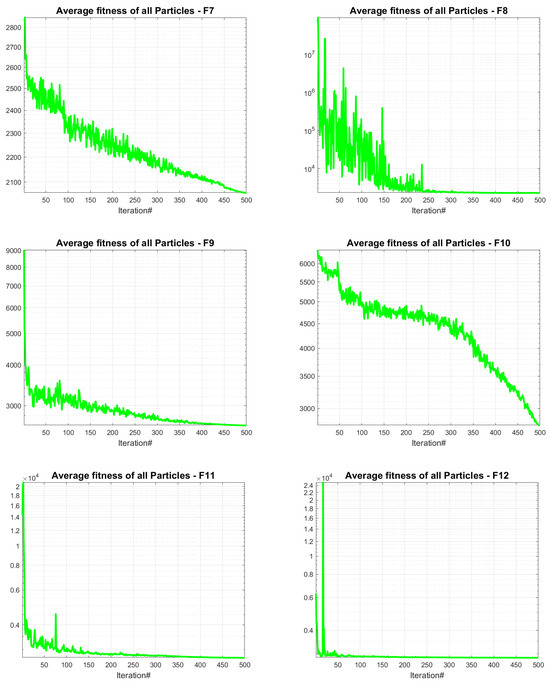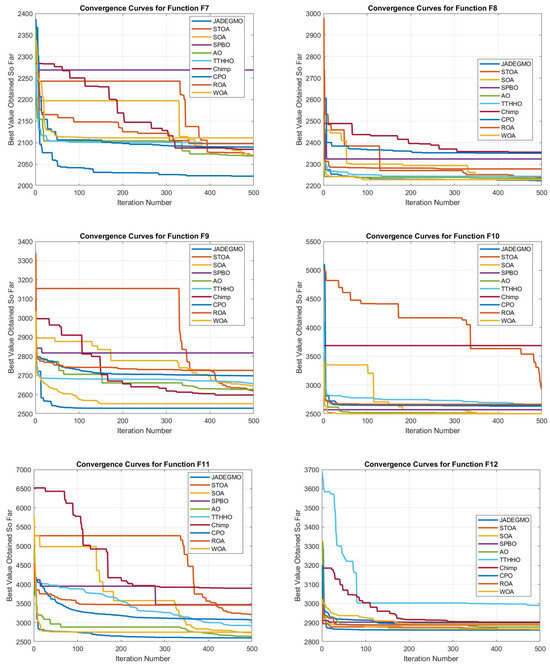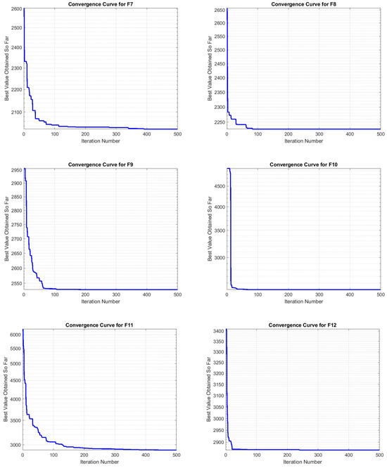 Convergence curve analysis for CEC2022 benchmark functions (F7–F12).