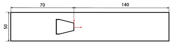 Based on Ansys Design Modeler, a two-dimensional vortex flowmeter section model of a DN50 pipeline is established. The flow channel size and coordinate origin are shown in Figure 5.
