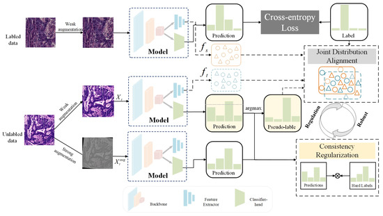- Berthelot, D.; Carlini, N.; Cubuk, E.D.; Kurakin, A.; Sohn, K.; Zhang, H.; Raffel, C. Remixmatch: Semi-supervised learning with distribution alignment and augmentation anchoring. arXiv 2019, arXiv:1911.09785. [Google Scholar]