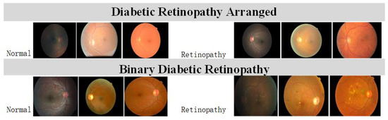 Image samples from Diabetic Retinopathy Arranged and Binary Diabetic Retinopathy (BiDR) datasets.