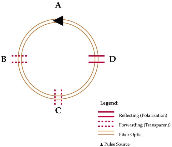 This mechanism introduces three key security properties. First, since the pulse direction is randomized, an eavesdropper cannot predict or manipulate the transmission path without introducing detectable anomalies. Second, because the reflection process occurs independently of the pulse’s initial direction, an adversary cannot infer information based on routing behavior. Third, the protocol ensures that a number of pulses will always return to their origin after completing the full ring, preserving the same polarization state in which they were originally sent.