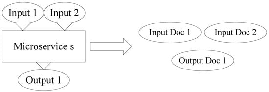 A comprehensive microservice documentation should include the microservice name, functionality description, inputs, outputs, error messages, and other relevant details. This algorithm, on the contrary, only focuses on extracting and filtering input and output information to generate corresponding documents, which detail parameter names, types, and formats. For microservices with multiple inputs or outputs, multiple corresponding documents are created, as illustrated in Figure 2. These documents structure input–output relationships, enabling accurate interface matching and microservice dependency graph construction.