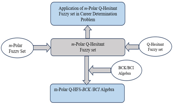 - Torra proposed the concept of HFSs, which is an empirical extension of FSs [27]. Chen et al. [14] introduced an extension of bipolar FS known as -PFS, where the grade of the membership function is extended from the interval to -polar intervals of or . Xi [21] initially introduced fuzzy algebra by combining the fundamental concepts of FS and algebra, and Ahmad [22] developed a strong connection between the concept of FSs and algebra.