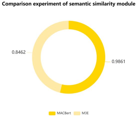 The M3E is a pre-trained multimodal text embedding model, which is a variant of the BERT architecture. It was designed to process both text and image data simultaneously and perform cross-modal retrieval tasks. To ensure the fairness and validity of the comparative experiments, consistency was maintained in the dataset, experimental hardware, software, parameters, and other conditions. The results of the comparative experiments conducted for the semantic similarity module are presented in Figure 12.