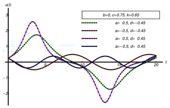 where the coefficients , , , and depend of the physical parameters a, b, c, d, and k from Equations (65), (67), and (69).