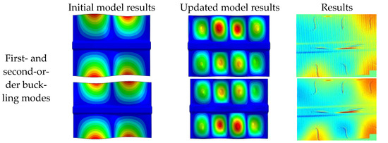 The material elastic parameters and boundary conditions were updated through the FEM update scheme. The buckling modes obtained by the updated FEM and the original FEM are shown in
