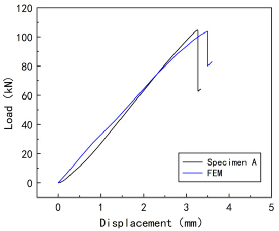 Figure 8. It can be seen that the buckling mode obtained by the updated FEM is closer to the measurement results of the FPP. The load–displacement curve obtained from the step-by-step loading simulation is illustrated in