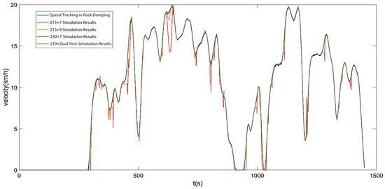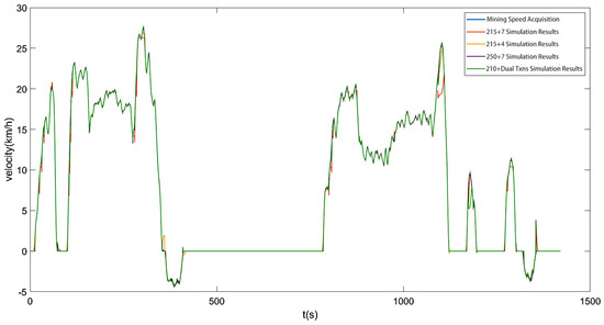 - Control strategy effectiveness: the torque allocation algorithm, based on working condition identification, realizes the symmetry of the torque allocation of dual motors (error < 5%); the speed tracking error is controlled within 2% and the response time is <100 ms. The downhill braking energy recovery efficiency reaches 85%, and the comprehensive power consumption is reduced to 4.75 kWh/km, which is 83% in energy savings compared with that of diesel vehicles.
