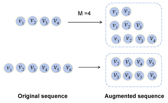Furthermore, by ensuring the association between items during the augmentation process, this method effectively enhances the recommendation model’s understanding of user preferences and behavioral patterns. Since each generated subsequence maintains associations with the items in the previous subsequence, the recommendation system can more accurately capture the historical behavior characteristics of users, thereby achieving higher accuracy in recommendation tasks. Ultimately, this project association-based augmentation method not only improves the effectiveness of the data but also optimizes the learning ability of the model, making the recommendation results more aligned with the user’s actual needs. The formula for this data augmentation method is as follows: