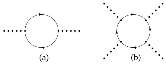 Thus, at a quantum level, due to the radiative corrections (Figure 1b) in the effective Lagrangian, local terms appear for the self-interaction of the scalar mesons with zero external momentum and corresponding symmetry factors: