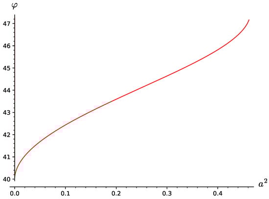 It is obvious from Figure 2, that three real roots exist for , where . Vice versa, for , only one real root exists. For and , we obtain only two real roots. From Equation (25), it follows that .