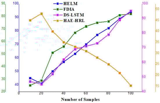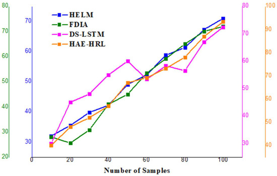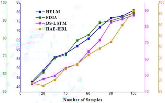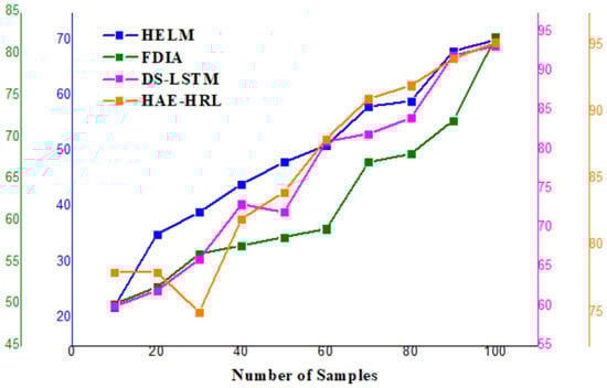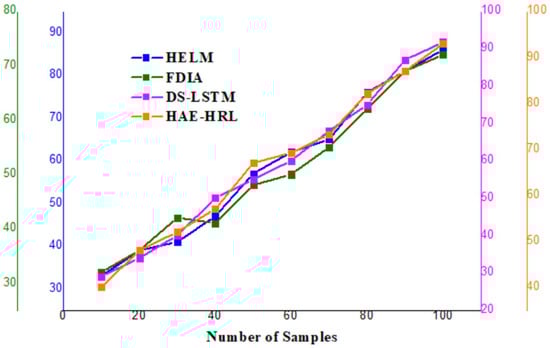 Detection accuracy (Figure 9) is a significant metric displaying the general effectiveness of the HAE–HRL system in identifying cyber threats. With an accuracy of 95.22%, the model properly classifies most situations, assuring a consistent cybersecurity solution for SCADA systems. This remarkable accuracy reveals the extent to which deep feature extraction and sequential pattern learning aid in reducing misclassification. As it greatly exceeds traditional methods, the proposed hybrid approach is a great choice for enhancing SCADA intrusion and network anomaly detection.