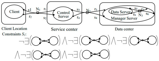 As shown in Table 2, there is a good mapping between the big data-oriented software architecture and the extended Bigraph. Figure 10 shows a simple example of big data-oriented software architecture, including four components, i.e., Client, Control Server, Manager Server, and Data Server; three connectors, i.e., N1, N2, N3, each connector has corresponding matching send and receive ports, for example, N1 has s1, r1, s2, r2; three places, i.e., Client Location, Service Center, and Data Center; and one constraint S1, it means that there can be no connector with communication port mismatch between two components.
