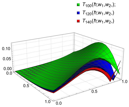 The error is examined for various values of and , specifically and 140. The corresponding error approximations are illustrated graphically in Figure 4 and listed in Table 2. These representations together offer insights into the accuracy and behavior of the operator as the values of and increase, highlighting the convergence of the operator to the target function .