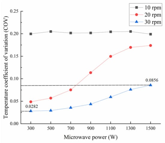 3.2.5. Analysis of the Effect of Microwave Power on Temperature COV with Stirring