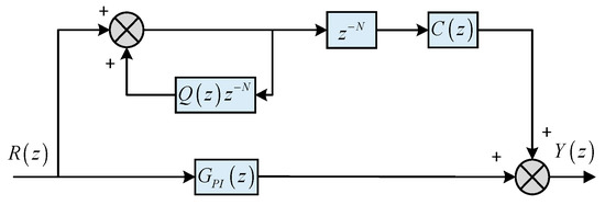 Using a two-phase rotating coordinate system in a positive sequence can effectively reduce the output DC component of the inverter and reduce the harm of the DC component. Repetitive control based on the internal model principle can effectively eliminate system periodic disturbance and error and reduce harmonic content. Equation (18) is the expression of the repetitive controller. The structure of the repetitive control in the discrete domain is shown in