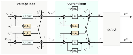 Figure 11), leveraging feedforward decoupling for robust voltage/current control. The negative sequence is directly regulated in the α-β static frame with a QPR controller (
