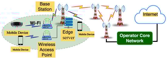 In MEC applications, Massive Machine-Type Communication (mMTC) represents one of the key research topics. The primary challenge lies in supporting connection densities as high as 1.0 × 106 device/km2 []. Smart cities represent one such scenario []. In a smart city, millions of distributed mobile devices sense their local environments and upload the data for further analysis, such as the City Brain (https://damo.alibaba.com/labs/city-brain?lang=en, accessed on 12 March 2024). However, to obtain the results in time, it is necessary to increase the data sampling frequency, which will unquestionably result in a data flood []. Thus, the MEC paradigm is taken advantage of to complete tasks using the resources of nearby edge servers.