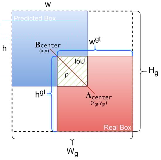 In the absence of overlap between the predicted and ground truth bounding boxes, no gradient backpropagation occurs, preventing effective training in deep learning. The schematic diagram of the IoU is illustrated in Figure 7.