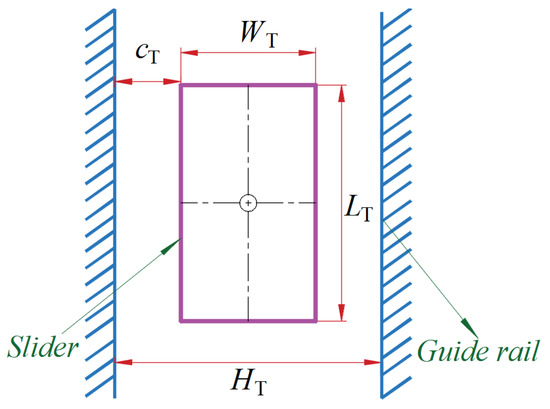Figure 1 shows a model of clearance of the translational pair, HT is the horizontal distance between upper and lower boundaries of the guide rail, WT is the width of the slider, LT is the length of the slider, and cT is clearance size, with cT = (HT − WT)/2.