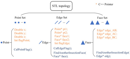 To efficiently extract groove profiles from cutting planes, STL model slicing is implemented. The inherent disorder of triangular facet representations necessitates computationally intensive operations, including full facet traversal for intersection detection and subsequent segment ordering—processes that are particularly inefficient for dense scanning-derived STL models. Scanning-acquired STL models with ultra-dense facet distributions (typically in the tens of millions) exacerbate computational complexity, as brute-force traversal algorithms yield unordered intersection segments with O(n) time complexity. To address these issues, the following topological optimization was implemented on the STL structure, as illustrated in