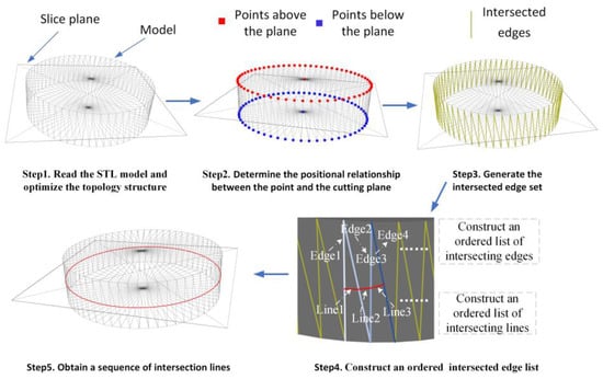 Table 1. It can be seen that topological structure optimization can significantly reduce the slicing time. When multiple slicing operations are performed on a model with a large number of triangles, the calculation time can be significantly shortened.