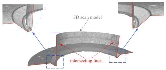 Figure 4, the greyscale parts in the picture are the scanned model, and the red line is the calculated intersection line.