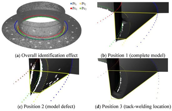 After obtaining cross-sectional contours, geometric feature identification is required for subsequent multi-layer multi-pass bead arrangement. For intersecting line welds, the narrow gap relative to the workpiece and highly reflective machined groove surfaces lead to scanning data loss near grooves when using handheld 3D scanners. Additionally, temporary tack-welding on large components causes groove information loss, as shown in