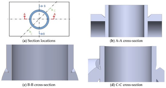 Figure 9. Comparative cross-sectional views at positions A-A, B-B, and C-C reveal significant profile differences, necessitating multi-pass weld path planning with multiple layers on the varying cross-sections.