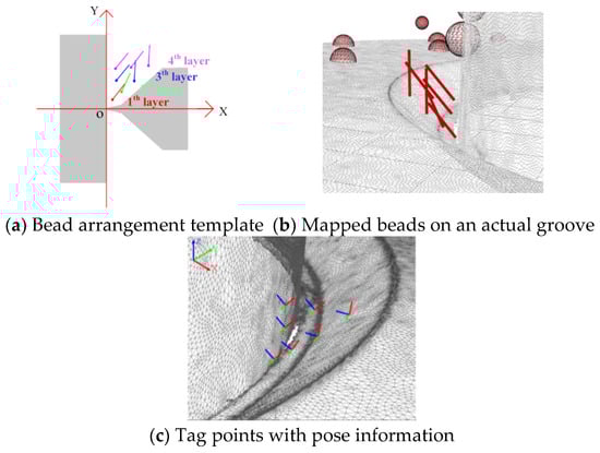 Figure 12 shows (a) a 2D bead pattern template; (b) projection-mapped beads on actual grooves; and (c) corresponding tag points in offline programming.