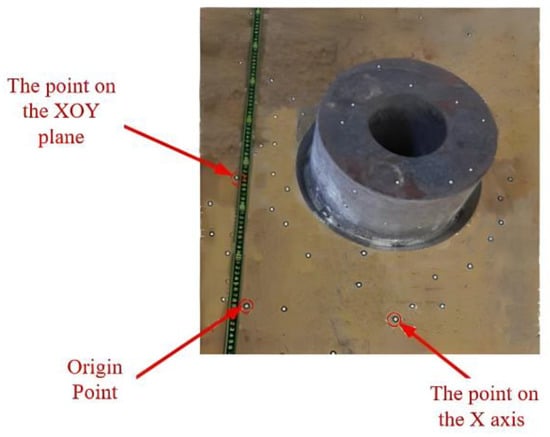 Figure 13. Three label points are selected on the workpiece surface as the origin, a point on the X-axis of the user coordinate system, and a point on the X-O-Y plane. During the calibration process, the welding gun direction remains unchanged to minimize the tool coordinate system error. The three-point calibration is completed at the center of the welding wire contact marker point, thereby establishing the user coordinate system in the robot system.