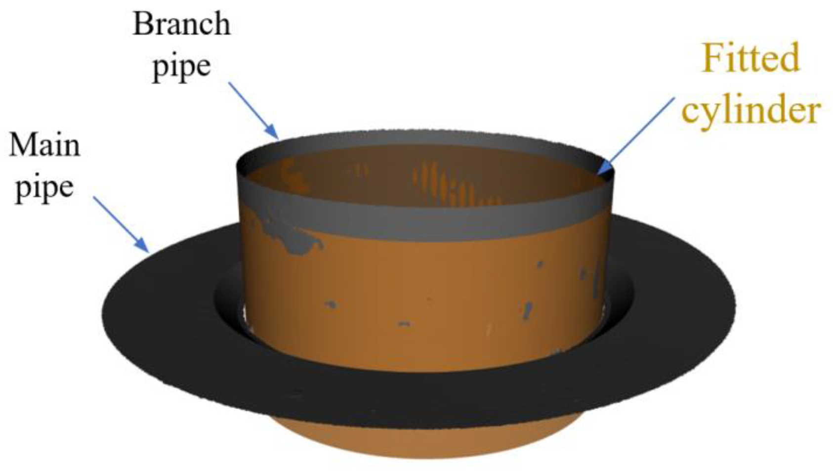 - Implementation of RANSAC-based cylindrical fitting to establish the central branch pipe axis, followed by Euclidean distance thresholding for point cloud segmentation. This preprocessing stage eliminates geometrically irrelevant data points, optimizing computational load for subsequent operations;