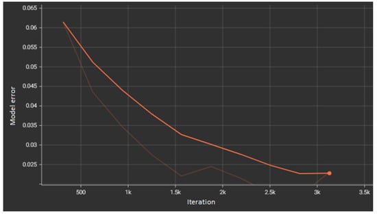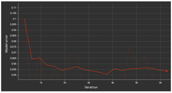 To minimize the deviations, an error back propagation algorithm is used to adjust the parameters of the integrated model (Figure 15). Training iterations: 3–5 k (3000 to 5000), with a training set size of 1.5 GB. It can be seen from the figure that the error decreases from 1.5 k iterations and becomes almost zero after 3 k iterations.