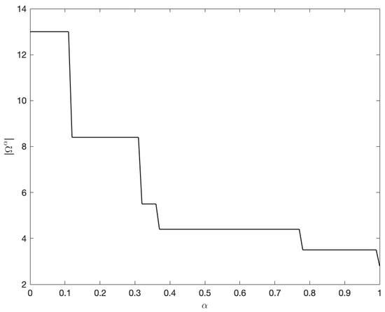 As shown in Figure 2, as the information granularity level α increases, the corresponding information granule size is constantly decreasing, and its changing trend is in a polyline shape. Therefore, solving for can be transformed into calculating the sum of the integrals of several piecewise linear functions. The evaluation indicator for the information granulation of the entire dataset X is as follows: