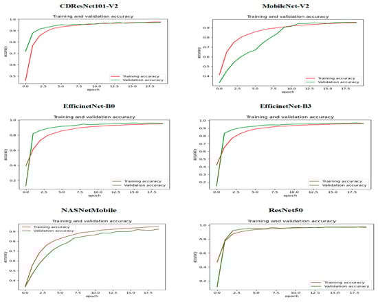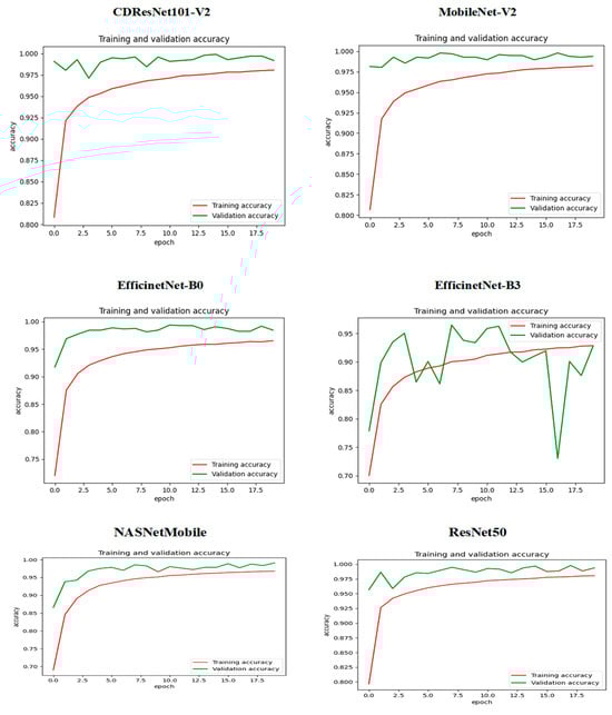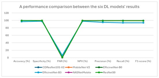 Phase 3 (Using 6 Pre-training DL Models): We selected five advanced pre-trained DL models in addition to the CDResNet101-V2 model, all of which were developed using the ImageNet dataset. The chosen models are MobileNet-V2, EfficinetNet-B0, EfficinetNet-B3, NASNetMobile, and ResNet50.
